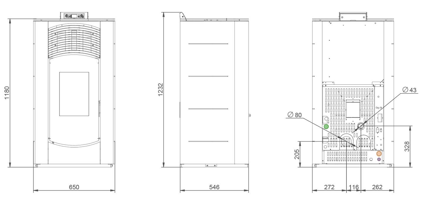 Centrāpakures granulu kamīns .Apkurināmā platība līdz 220 m2