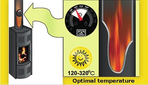 Zinot un regulējot plīts caurules temperatūru: mazāks degvielas patēriņš, tiek panākta krāsns darbības efektivitāte, samazināta ugunsbīstamība un oglekļa gāzu intoksikācija.