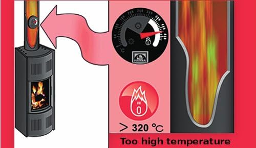 320°C un augstāka temperatūra: aizdegšanās risks skursteņa iekšpusē nogulsnētiem gružiem. Palielināti siltuma zudumi, ko izraisa liels siltuma zudums caur skursteni. Samazināts plīts lietderīgās lietošanas laiks.
