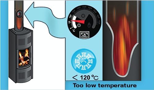 Temperatūra līdz 120°C: nepabeigta sadegšana krāsnī rada kvēpu un kreozotu. Nogulsnē gružus, kas uzkrājas uz krāsns iekšējām sienām un skursteņa un samazina skursteņa vilkmi.