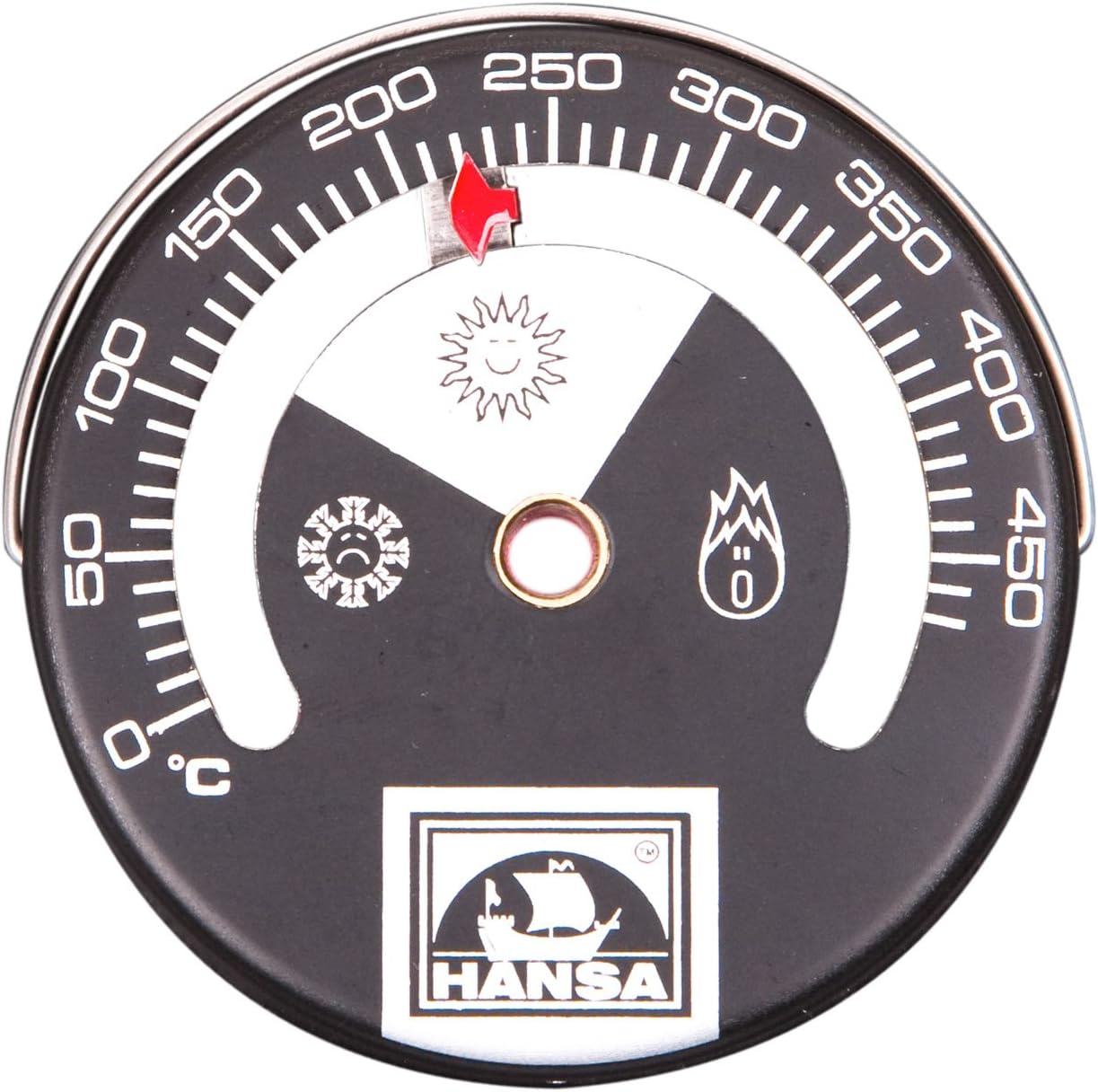 Paredzēts lietošanai uz plīts skursteņa, kas izgatavots no viena slāņa metāla. Termometra aizmugurē ir uzstādīts magnēts, kas magnetizē un notur termometru uz skursteņa virsmas.