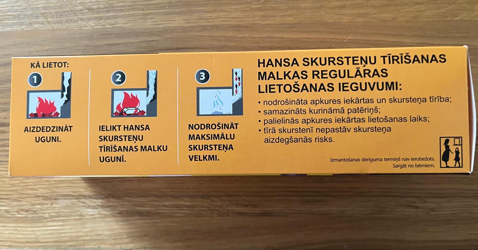 sastāv no apses skaidām un katalizatora , tā ir paredzēta dūmvada tīrīšanai . Lai panāktu labu tīrīšanas efektu, apkures sezonā iesakām to izmantot vienu reizi mēnesī .