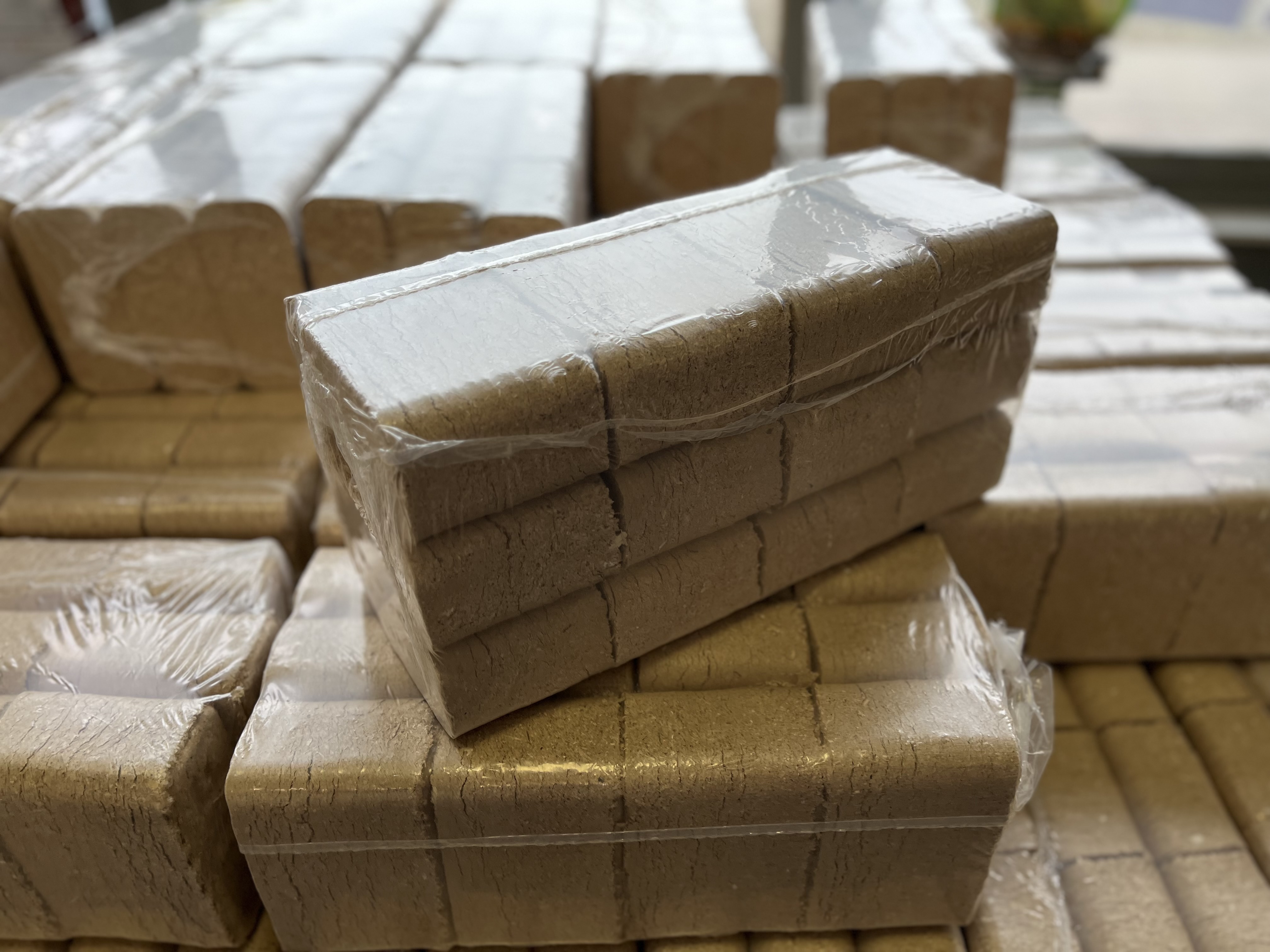 Skaidu briketes ražotas no miksētām lapu koku skaidām ( ozols ,termo osis , bērzs ). Brikešu mitrums 5-7 %